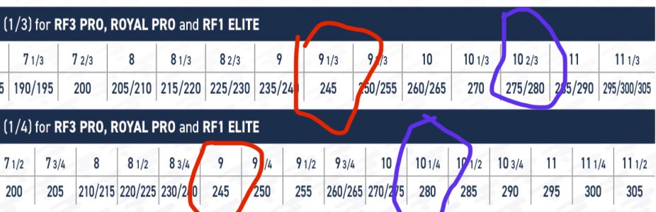 Я вижу сильную разницу у разных фигуристов в установке, Risport предлагает 10 1/4 и 10 2/3, хотя если логически воспринимать ближайшие размеры в двух системах измерения (трети и четверти) это или 10 1/2+10 2/3 или 10 1/4+10 1/3 — то есть в их таблице логика ближайшиХ размеров нарушена, просто перескочили в своих каталогах через один размер лезвия. Чтобы исключить опечатку я сделал проверку и погуглил каталоги за предыдущие три года — и такая динамика сохраняется, они рекомендуют не ближайшие размеры лезвий для одних и тех же ботинок. Помогите не просто рекомендацией «нужно такое лезвие», а объясните почему так? (Если вдруг нужно, то моя нога 27.5 левая, 27.3 правая. Ботинок подходит хорошо)